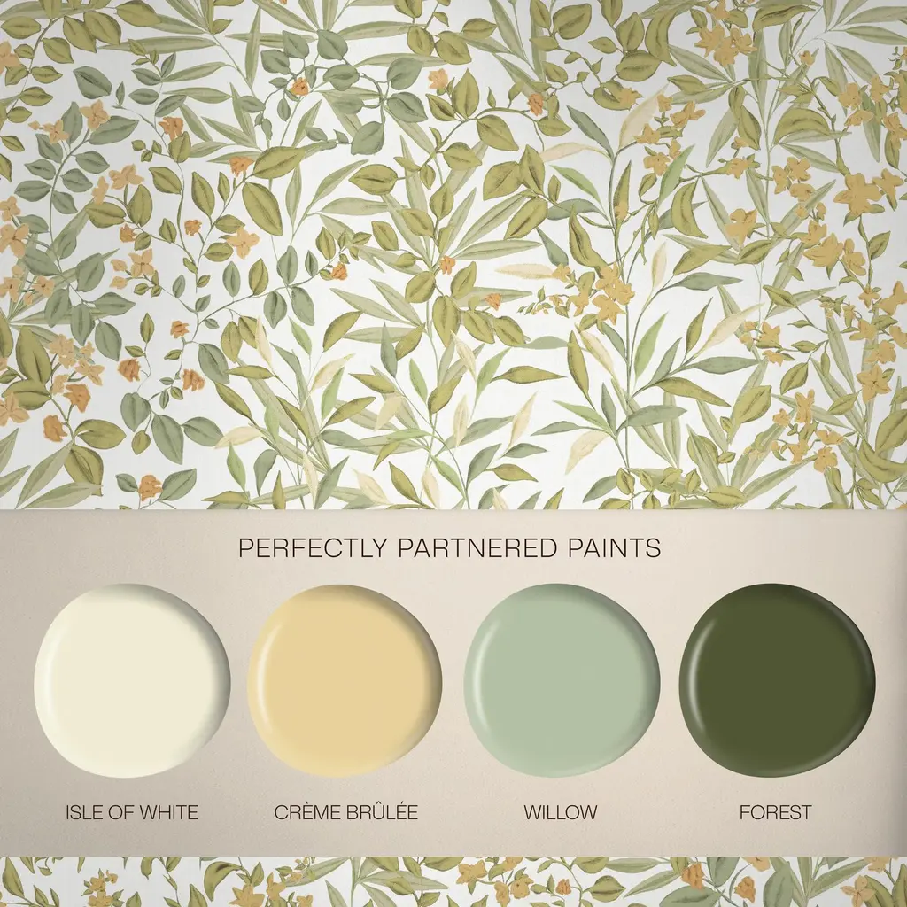 Dette er et tapet som føles både lett og rikelig – en beroligende engscene oversatt til mønster.
