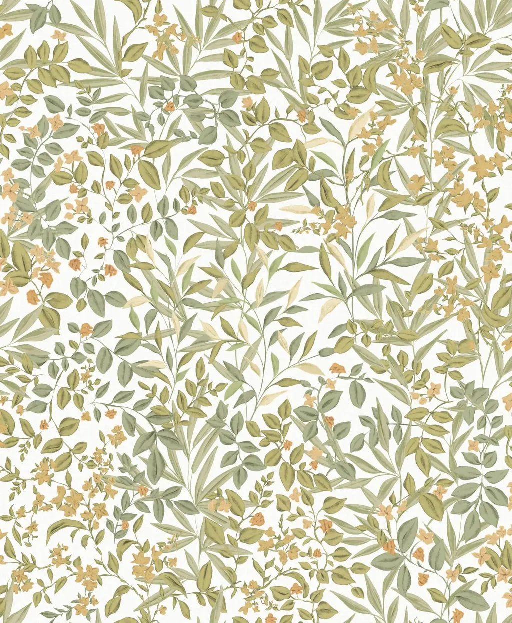 Reverie Crème Brûlée , småmønstrete tapet med blader og løv i gult og grønt