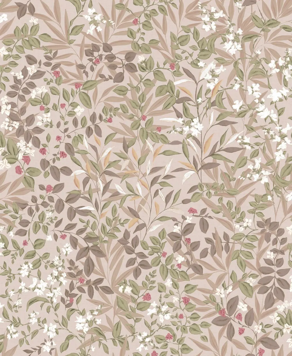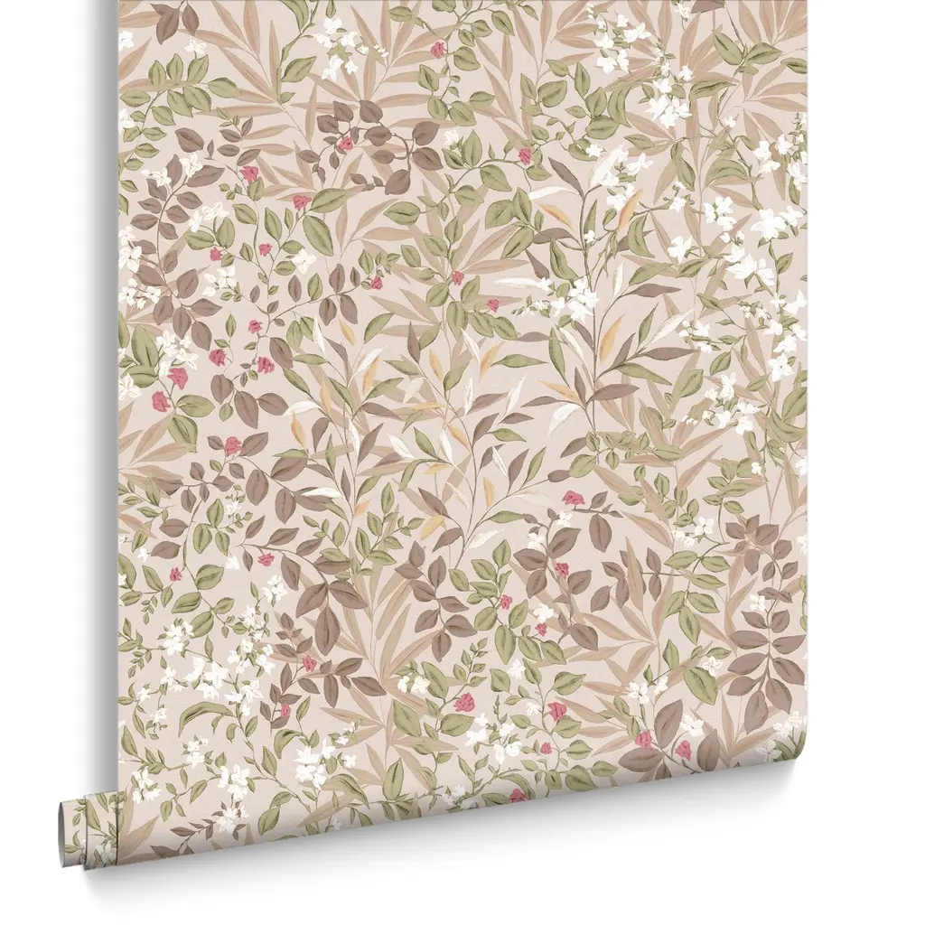 Reverie Whispering Rose, tapet med blader i rosa og duse toner