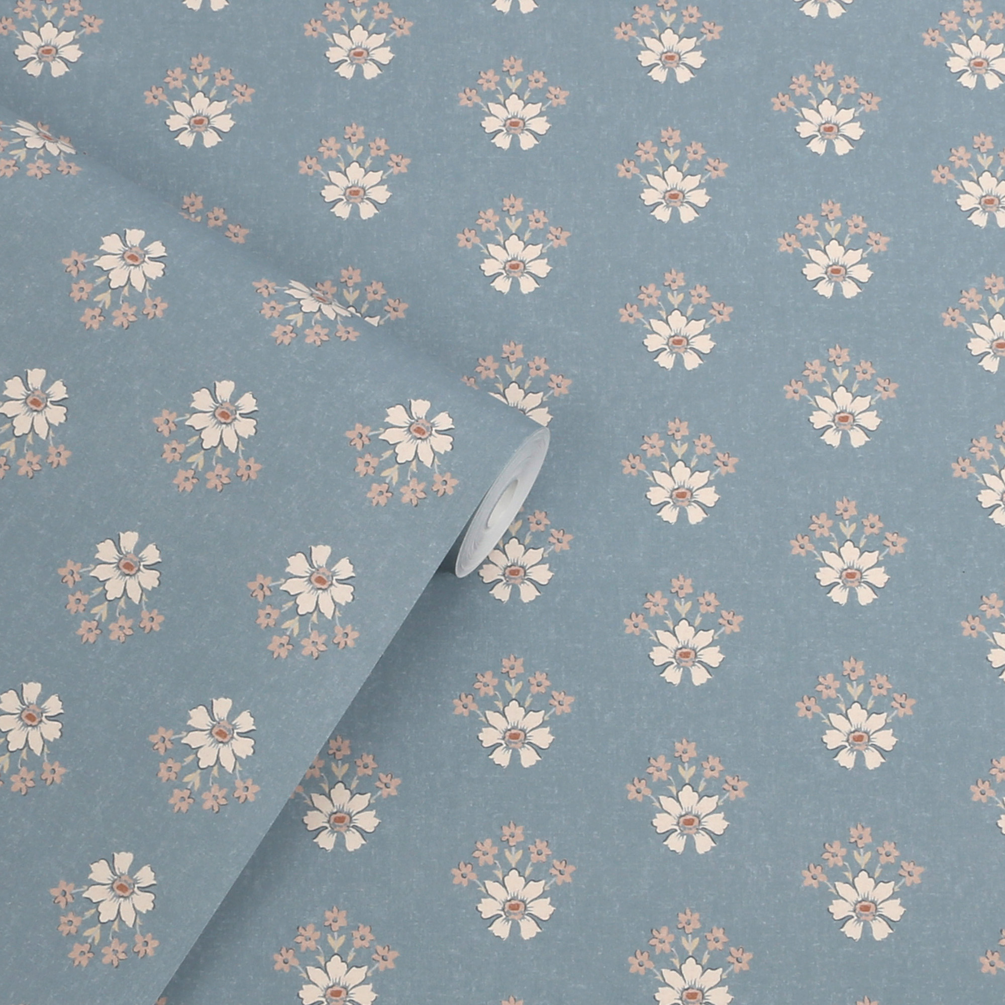Semington Floral Geo, blomstrete småmønstret tapet i blått fra Laura Ashley