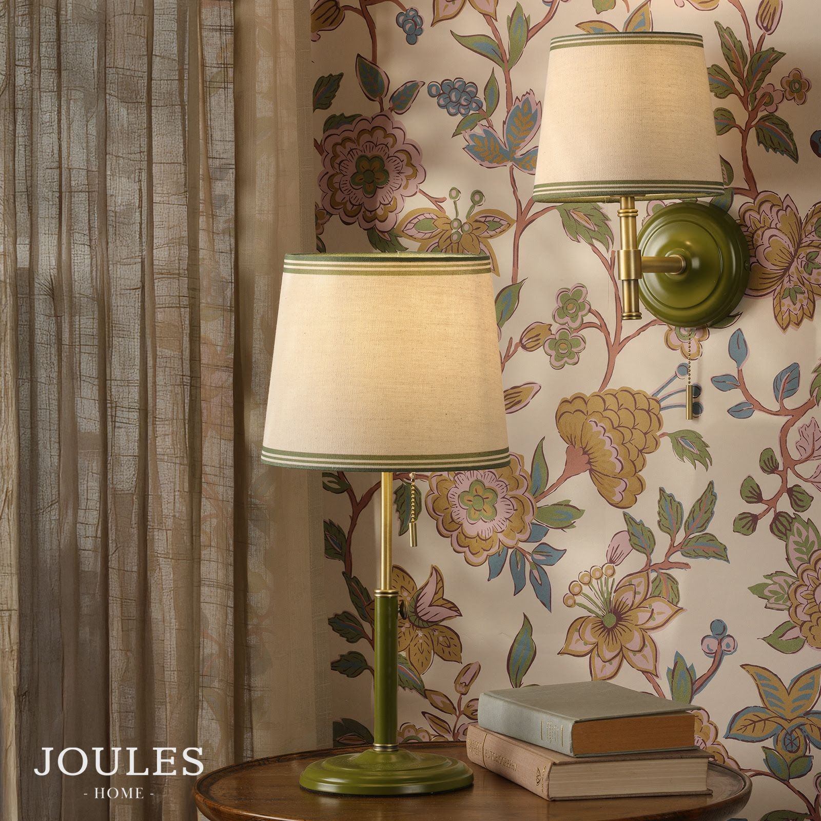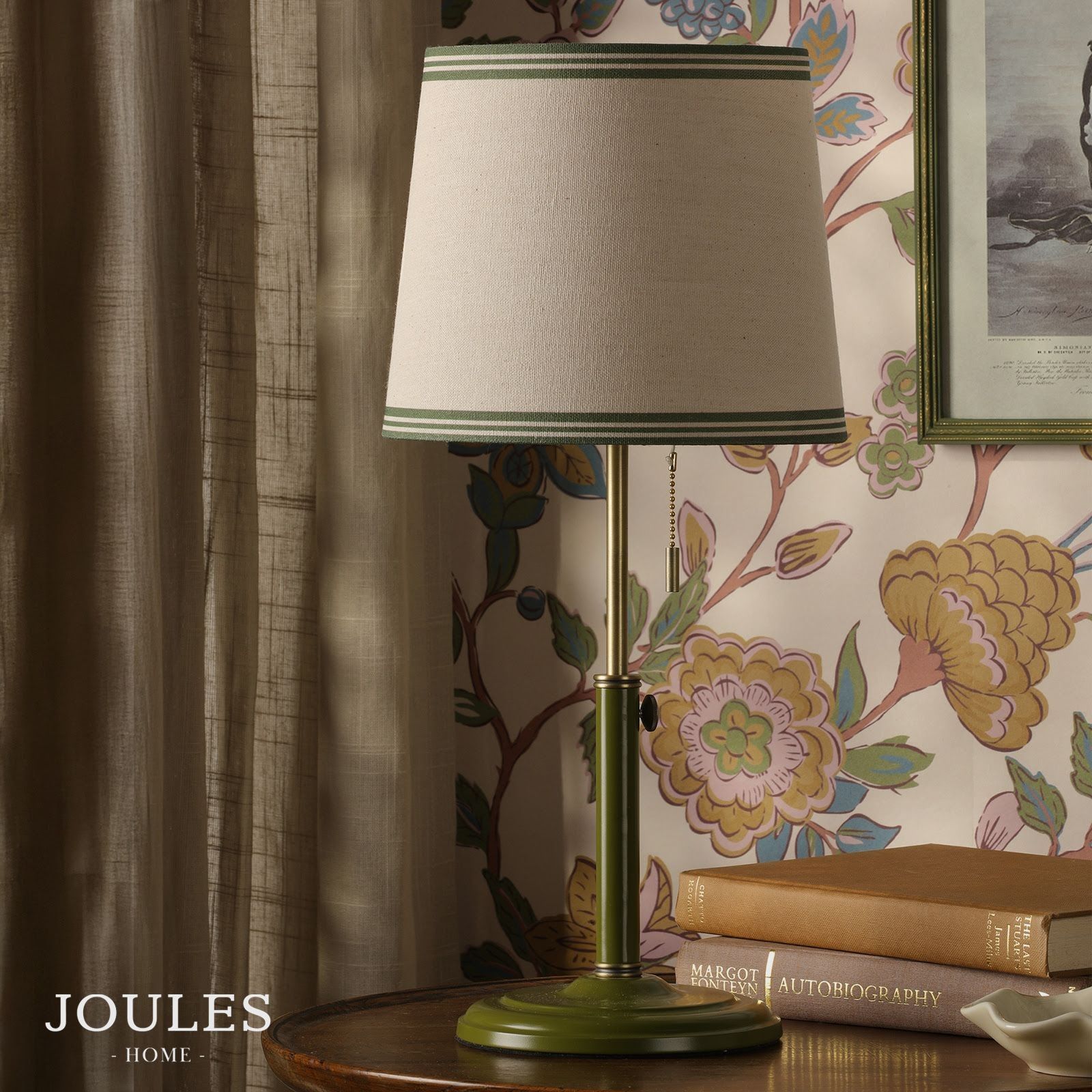 Upton, justerbar grønn bordlampe med skjerm i naturlin fra Joules
