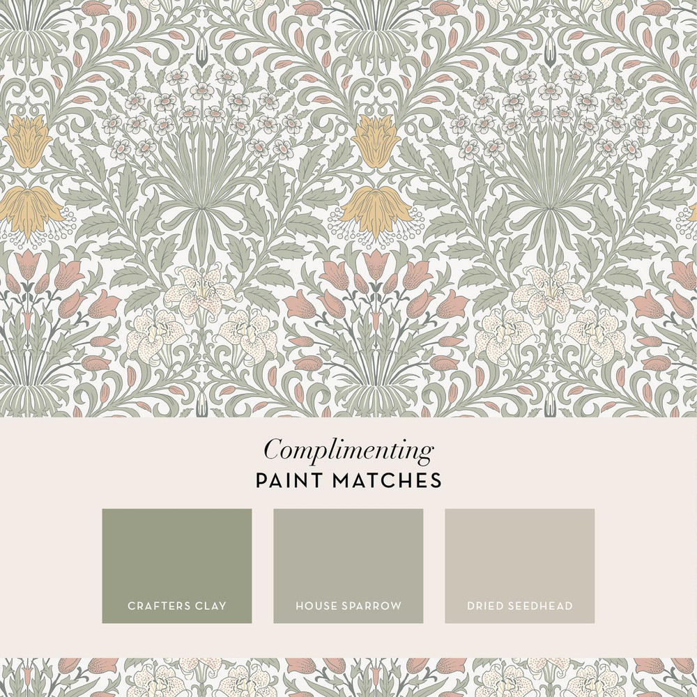 William Morris At Home, Garden Soft Sage, blomstrete tapet i salviegrønt