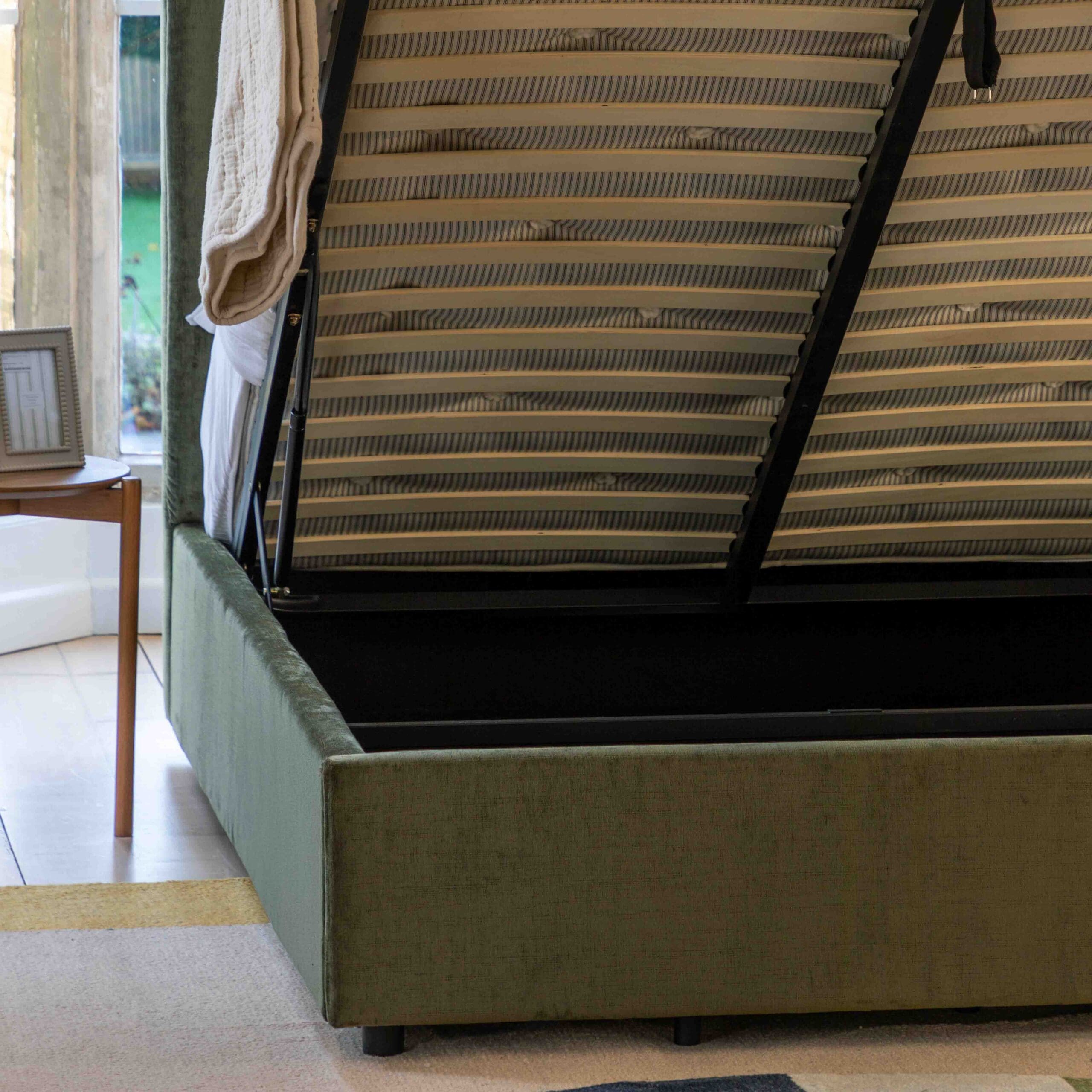 This classic bedstead is an elegant and refined addition to any sophisticated bedroom. The shaped headboard creates a serene, inviting atmosphere. Designed for both beauty and function, the bed also features an ottoman underbed storage area.