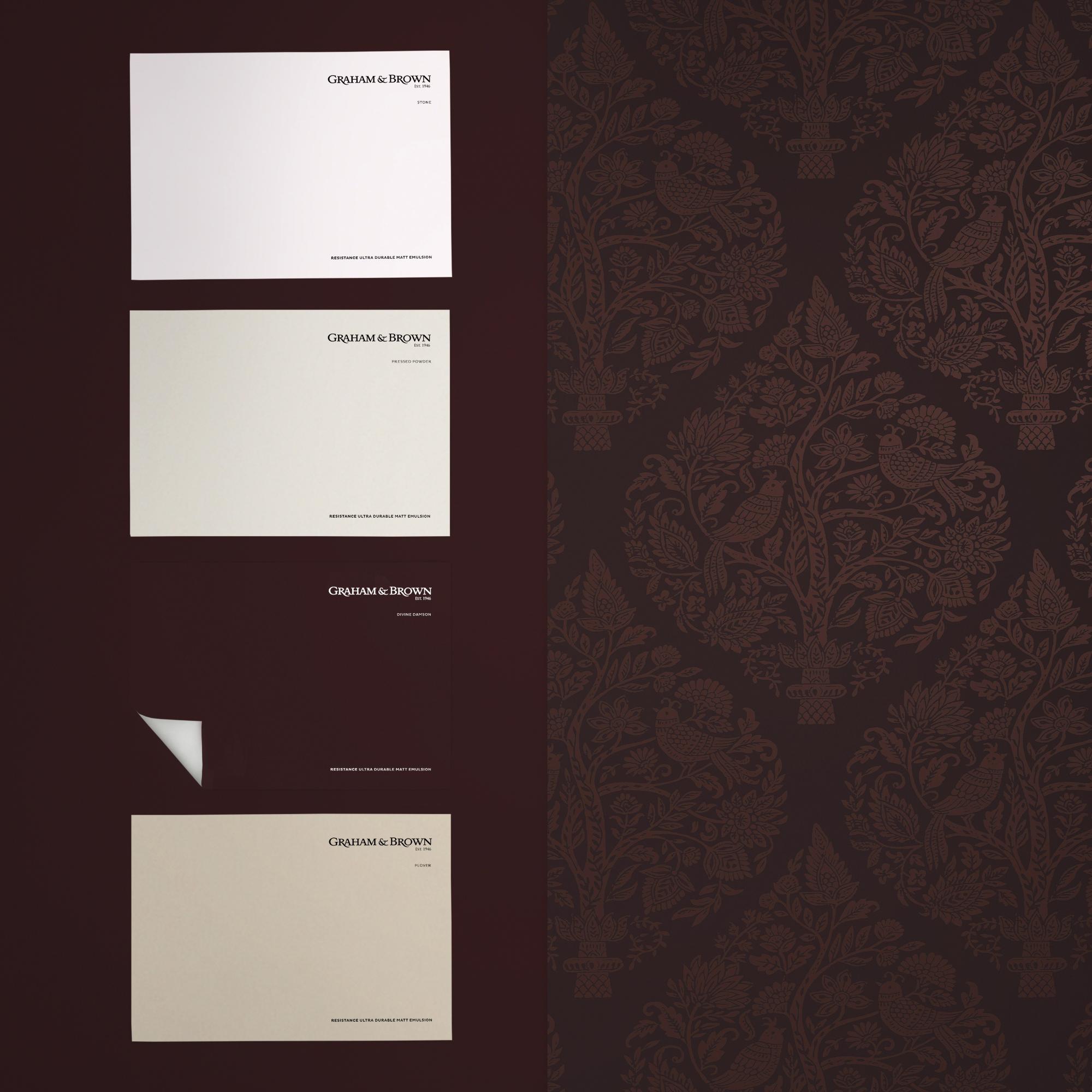 A fairytale brought to life , Woodland Fable Fig is a richly tactile celebration of nature`s quieter moments. Stylised peacocks perch among flowering branches and layered leaves, their forms etched against a deep emerald backdrop.