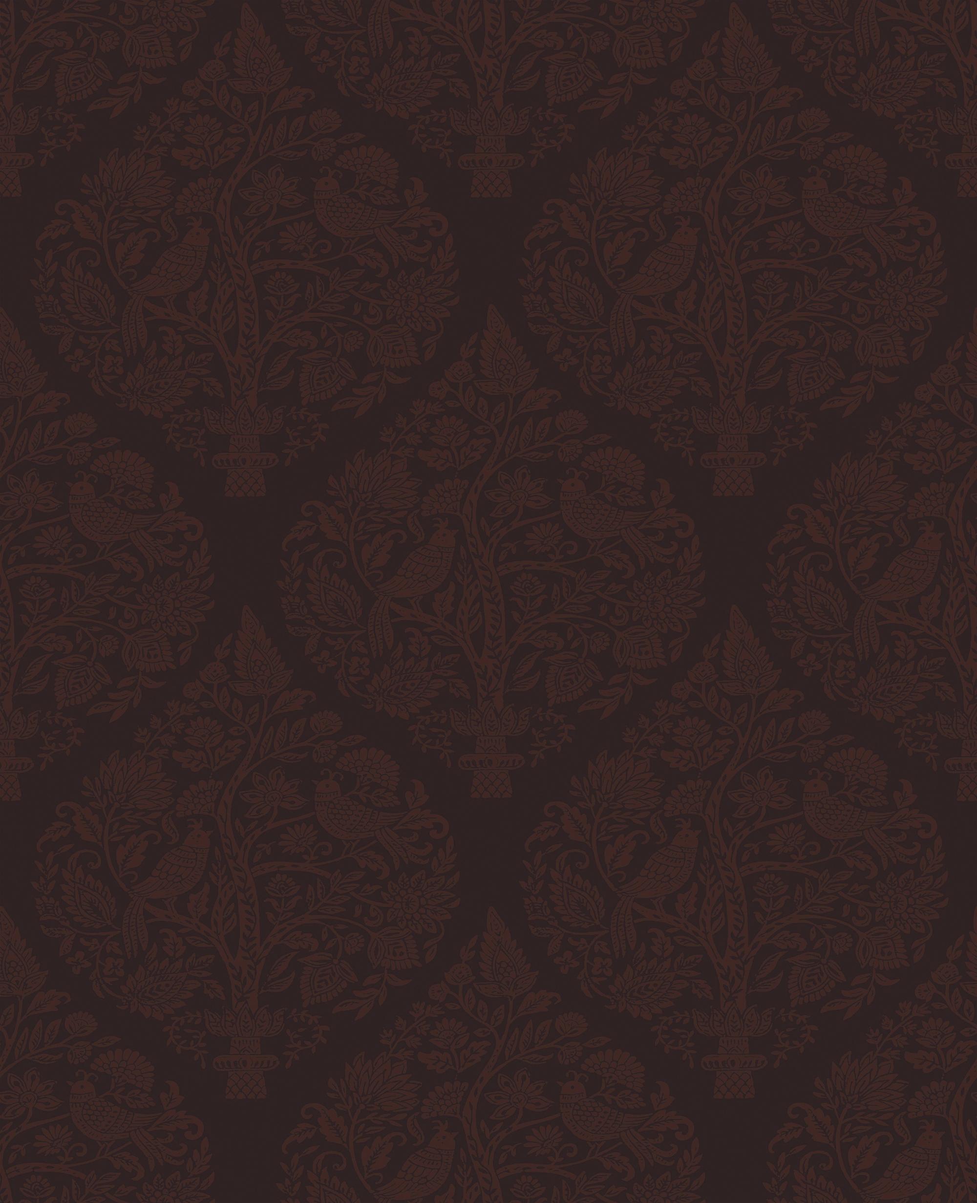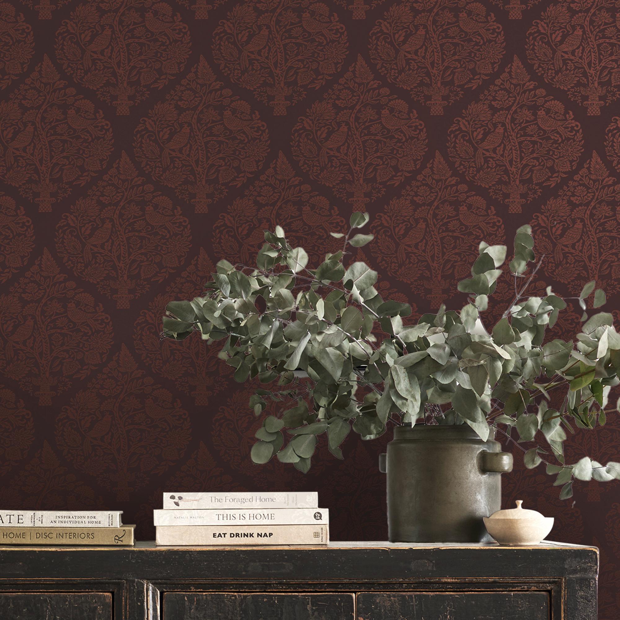 Woodland Fable, elegant mønstrete tapet i dyp rød