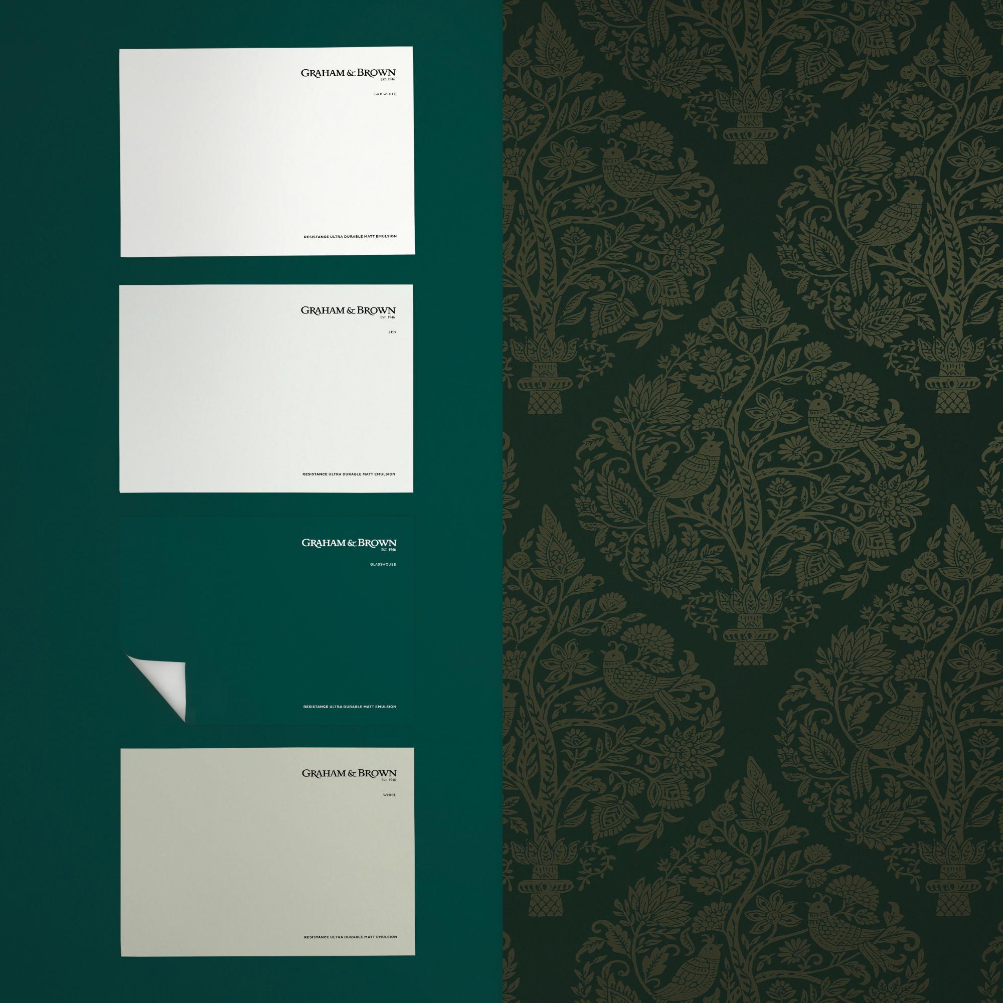 A fairytale brought to life , Woodland Fable Emerald is a richly tactile celebration of nature`s quieter moments. Stylised peacocks perch among flowering branches and layered leaves, their forms etched against a deep emerald backdrop.