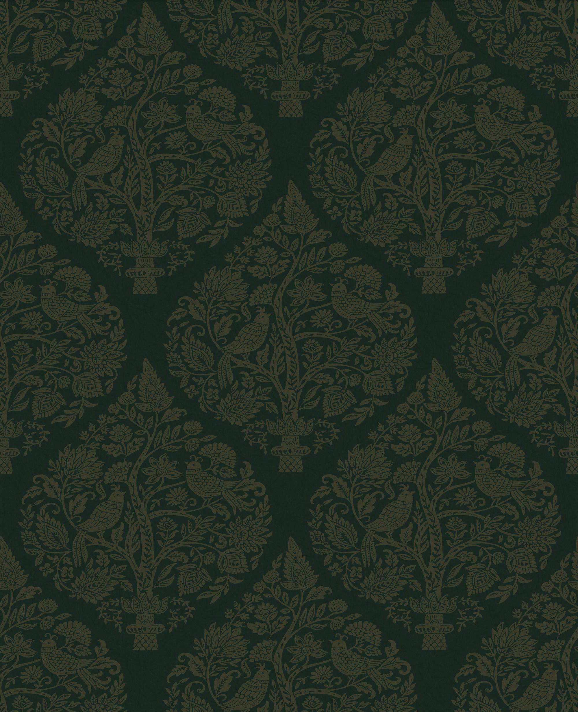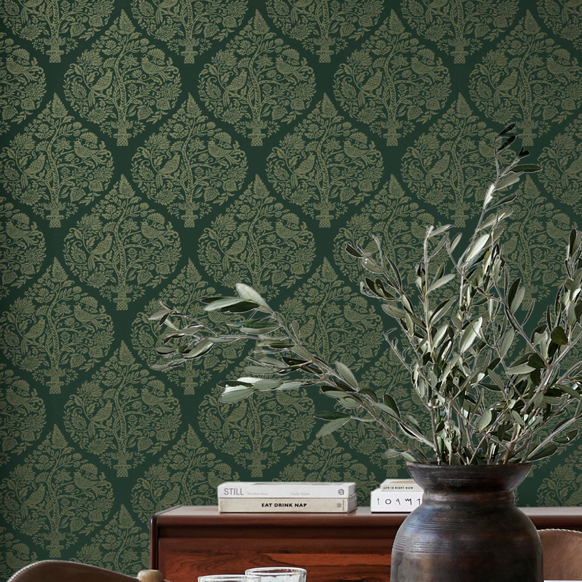 Woodland Fable, elegant mønstrete tapet i smaragdgrønt